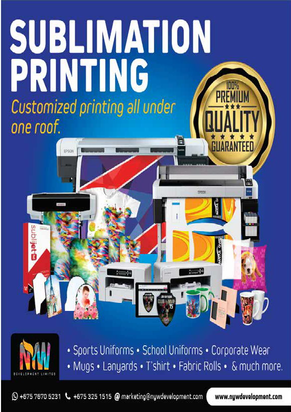 NYW Development Ltd is a Port Moresby-based creative services company dedicated to providing bespoke digital printing, custom merchandising and supply solutions across PNG. Established to serve the rising demand for quality imported and locally-produced branded products, we work closely with global suppliers to meet industry standards while supporting local businesses and organisations.